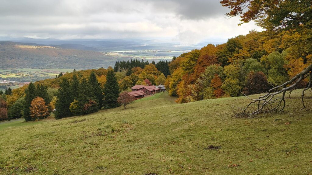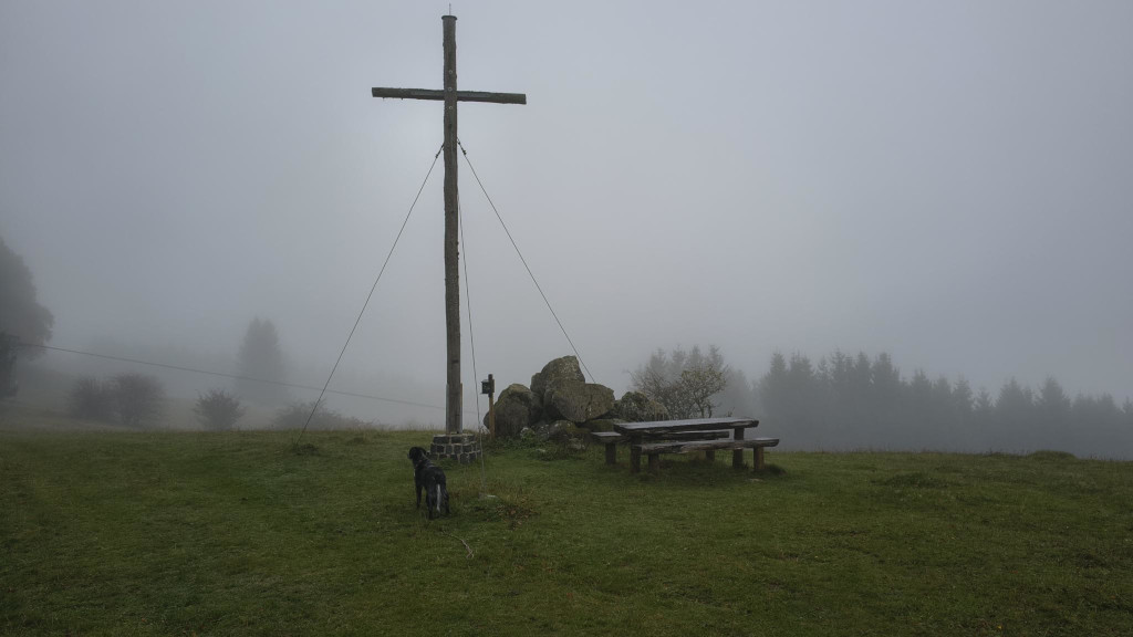 Ausgangspunkt ist der Stellplatz am Gasthof Roth am Kreuzberg, gut für mehrere Wanderungen, toller Weitblick, zT Stromversorgung aber sonst nichts.