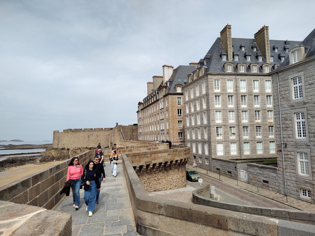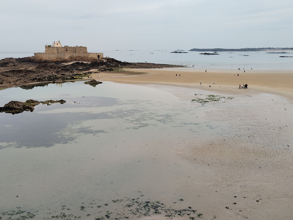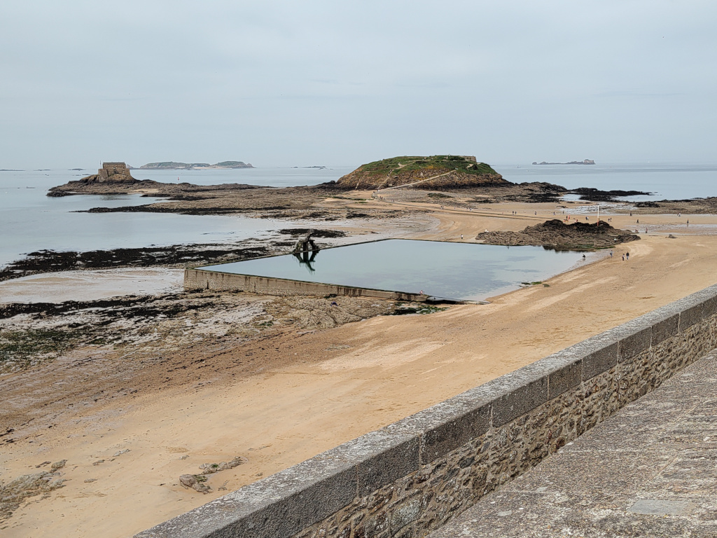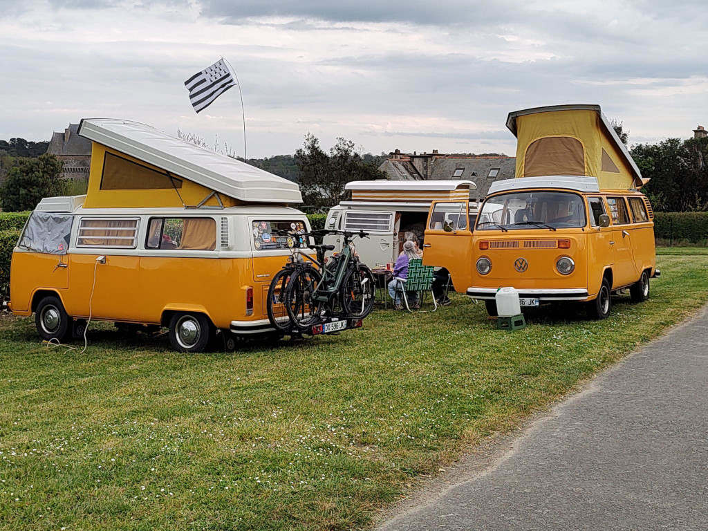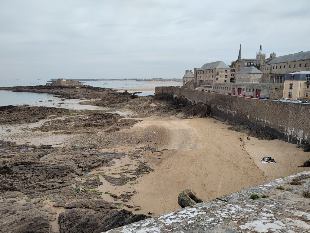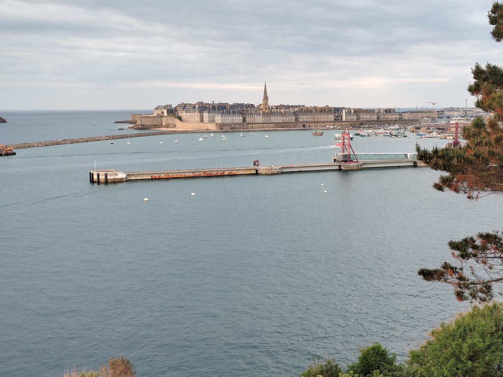 Der Campingplatz in der Cite d‘ Aleth ist ein innerstädtischer Platz, fantastisch gelegen, Rasenplätze, manchmal uneben, einfache Ausstattung aber prima, abends sehr schön Burger vegetarien avec legumes mixte und ein bretonisches Bier am „Point Zero“, der top Open Air Bar mit Sitzgruppen an einer klasse Aussicht.